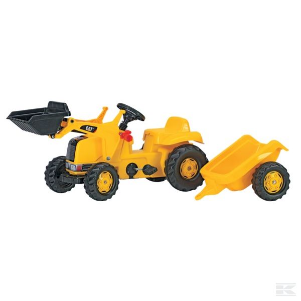 Šlapací traktor Rolly Toys je provedený v designu známého žlutého Caterpillaru. Součástí traktoru je nakládací lžíce a jednoosá vlečka. Včetně funkčního čelního nakladače a přívěsu. Otevírací kapota motoru, je možno dovybavit dalším příslušenstvím.