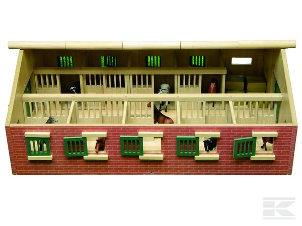 Propracovaná maštal s mnoha detaily. Zvířata nejsou součástí dodávky. Rozměr boxu cca. 12x12 cm. Vhodný pro figurky s měřítkem 1:32 (např. Kids Globe).