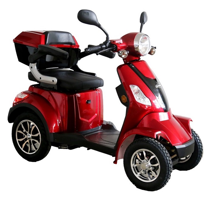 Čtyřkolový elektrický skútr pro seniory s výjimečným výkonem 1000W, který díky silovému převodu umožňuje plynulou reakci a to i v kopcovitém terénu nebo při rozjezdu z křižovatky.