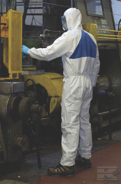 Jednorázová kombinéza se třídou ochrany 5/6, lepší cirkulace vzduchu prodyšný zadní díl, ochrana před stříkanci kapalných chemikálií