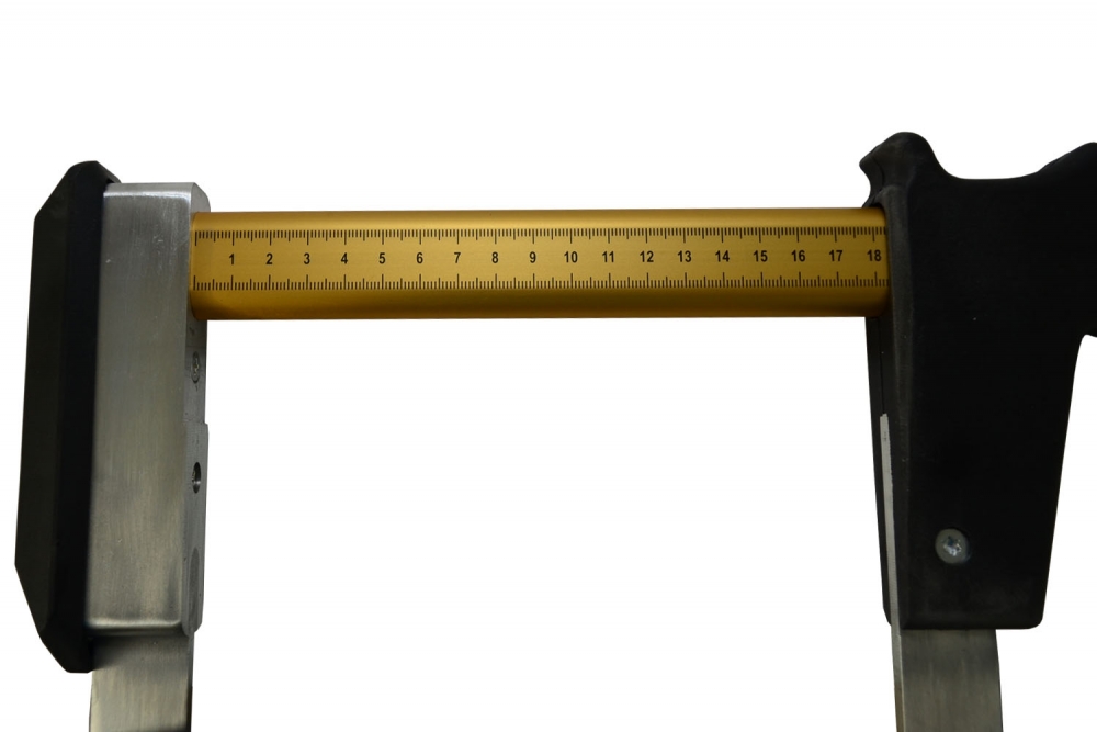 Jako měřící lišta slouží 30mm široký oválný profil ze speciální slitiny s optimální pevností v ohybu. Dobře čitelná čísla sytě černé barvy, odolné proti otěru, na obou stranách a zlatá barva na liště usnadňují přesný odečet.