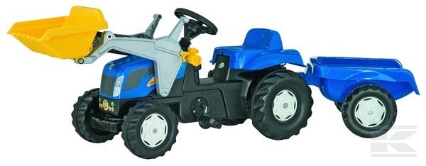Rolly Toys šlapadlo pro děti RollyKid New Holland TVT190 s čelním nakladačem a přívěsem.