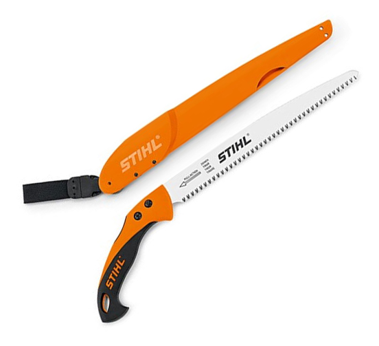 Ruční vyvětvovací pila Stihl PR pro rychlé a přesné řezání. Třístranné japonské ozubení, impulzně kalená, chromovaná ocel, kónický tvar pilového listu, ergonomická rukojeť opatřená měkkým potahem, s ochranou proti korozi, s pouzdrem pro oboustrannou montáž, jak pro leváky, tak i praváky.