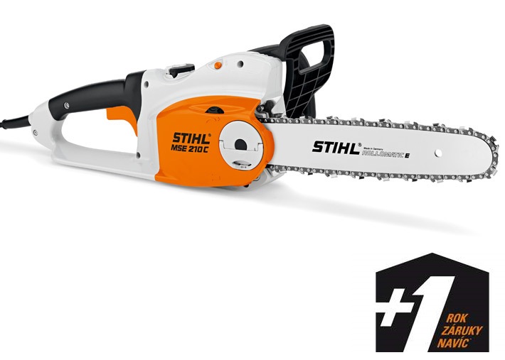 Silná elektrická pila STIHL MSE 210 C-B s vysokým řezným výkonem a velmi dobrou ergonomií pro práci šetřící síly. Zařízení pro rychlonapínání řetězu pro snadné, rychlé a bezpečné napínání řetězu bez použití nářadí, rukojeť opatřena měkkým potahem pro příjemnou práci, brzda řetězu QuickStop Super, uzávěr nádrže nevyžadující použití nářadí pro snadné a bezpečné plnění adhezního oleje na pilové řetězy, ochrana proti přetížení.