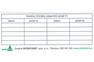 Samolepka o rozměrech 9,5x4cm vhodná pro evidenci záznamů pro feromové odparníky na kůrovce.