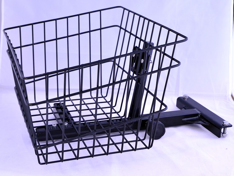 Zadní košík na elektrický invalidní vozík - skútr pro seniory Selvo 4800. Montáž na sedačku s možností připojit také držák holí.