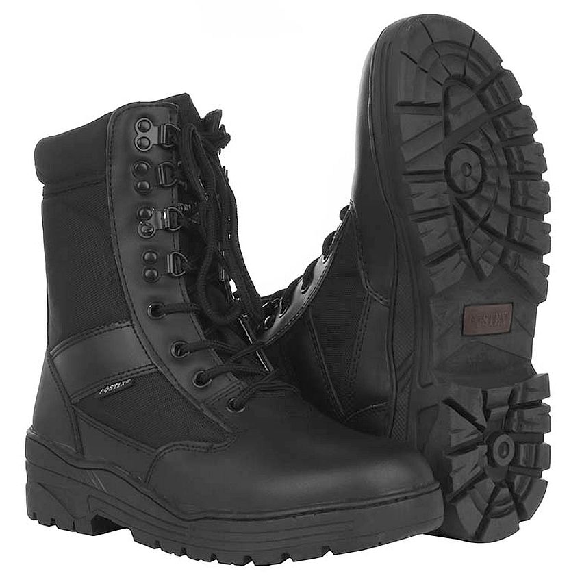 Armádní boty - volnočasové boty pro outdoorové aktivity. Polní pánská obuv FOSTEX Garments Sniper černé s podšívkou z prodyšného KBTex, vystužená hřídel. Materiál : 75% kůže / 25% nylon