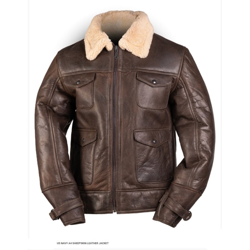 Naprosto věrohodný US NAVY BOMBER A4 100% pěstovaná jehněčí kůže- extrémně teplá kožená bunda z měkké ovčí kůže- pevný přední zip- 4 našité kapsy s klopou a druky- manžety nastavitelné pomocí kožených pásků celý popis