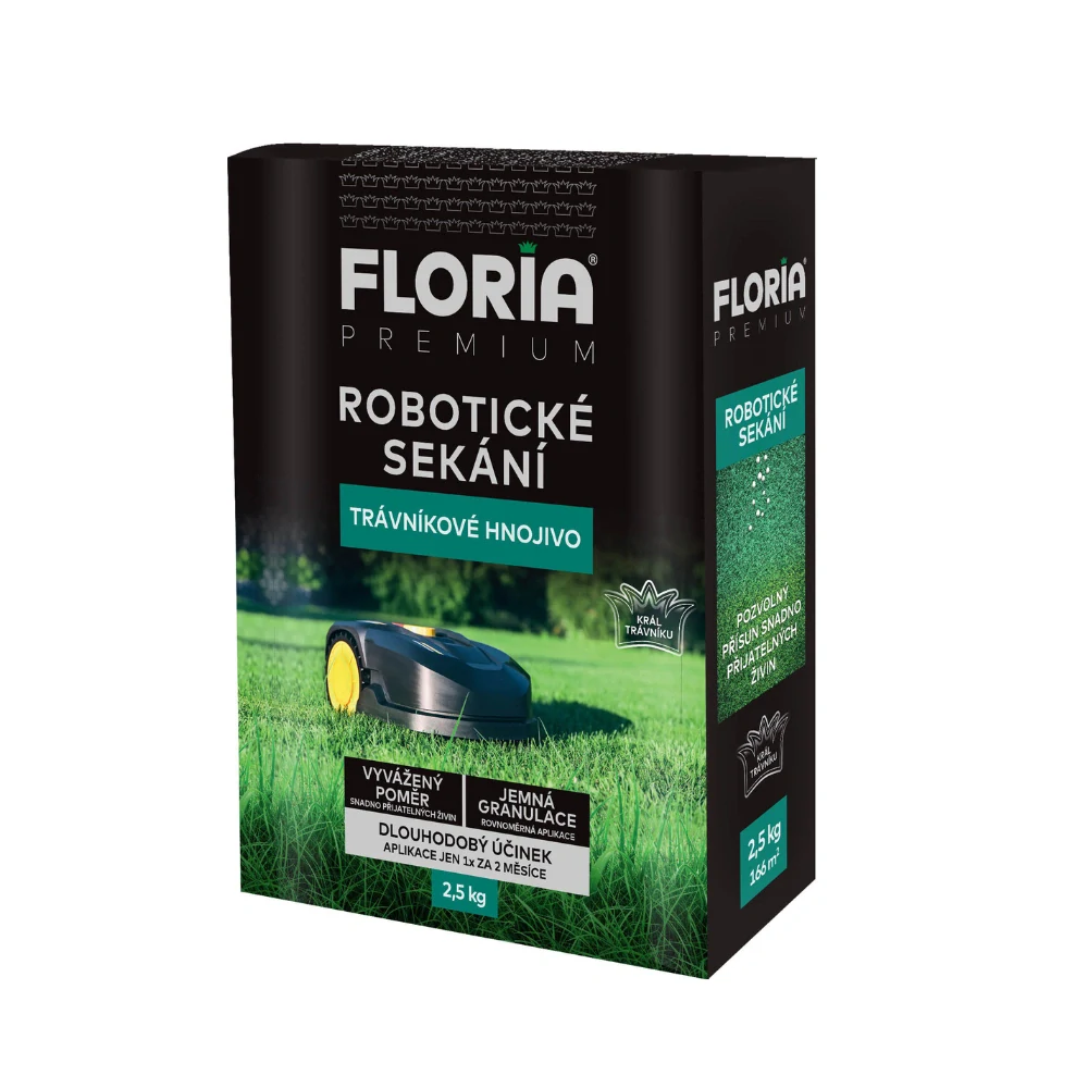 Chcete mít hustý, zdravý a sytě zelený trávník bez zbytečné námahy? FLORIA PREMIUM Trávníkové hnojivo pro robotické sekání je navržené speciálně pro trávníky pravidelně udržované robotickými sekačkami. Díky jemné granulaci, dlouhodobému účinku a vyváženému složení dodává trávníku potřebné živiny rovnoměrně po celé vegetační období.