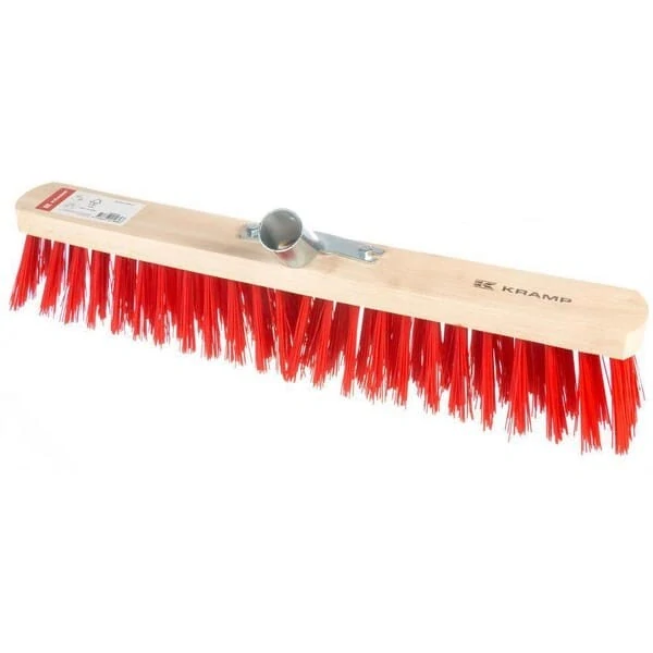 Dřevěný halový smeták Kramp elastický bez násady se standartním připojením Ø 28 mm s kovovým držákem násady. S červenými syntetickými vlákny. Pracovní šíře 500 mm. Tento smeták lze používat k odstranění hrubých nečistot, zbytků betonu a stavebního odpadu. Je vhodný i pro mokré povrchy při dešti a ve sněhu.