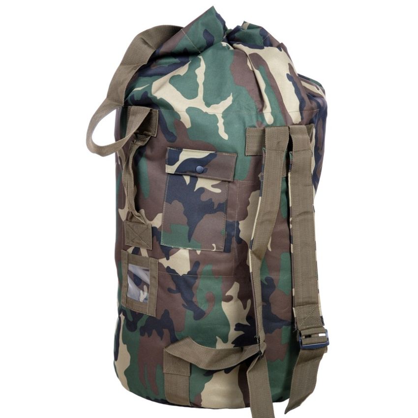 Armádní batohy a vaky. Lodní vak je v kamufláži woodland, vyroben z nylonového materiálu , což zaručuje jeho odolnost vůči povětrnostním vlivům. Nosné řemeny umožňují nošení na ramenou ale i v ruce. Vyhledávaný především milovníky a vyznavači vodáckých tradic, využití stejné jako klasický batoh.