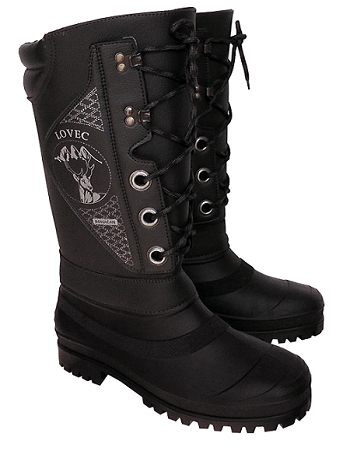 Podešev litá z kaučuku, svrchní část z nepromokavé textilie podlepená 8mm silnou pěnou, vyjímatelná vložka z netkané textilie zateplená ekovlnou.