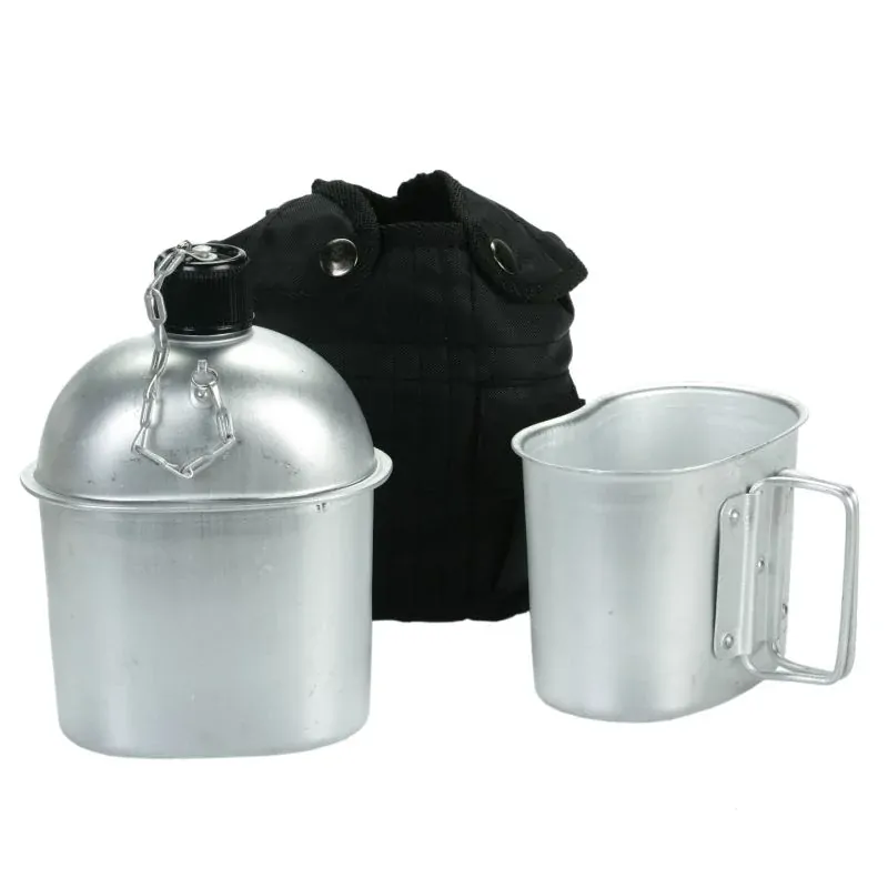 Hliníková polní láhev s pitítkem a obalem v jednobarevném černém provedení.