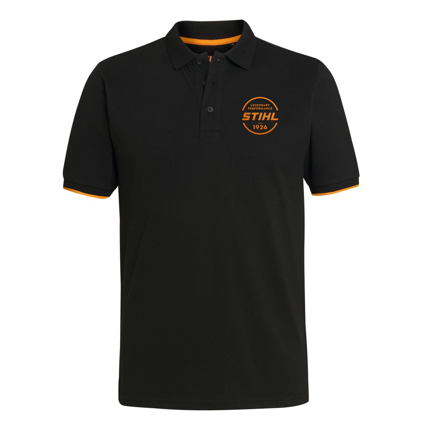 Polotričko s krátkým rukávem v provedení Regular Fit z bavlněného piqué, boční rozparky a rýhované náplety s oranžovými proužky. Logo STIHL na prsou, ploché švy a oranžový dekor. 100% bavlna.