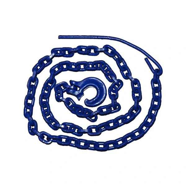 Lesnický modrý úvazek z hranatého vysokopevnostního řetězu třídy G100 o průměru 7 mm dlouhý 2 m s C-hákem, s provlékací jehlou. Řetězový úvazek s maximální tažnou silou 4.500 kg se používá k přibližování kmenů pomocí lanových navijáků.