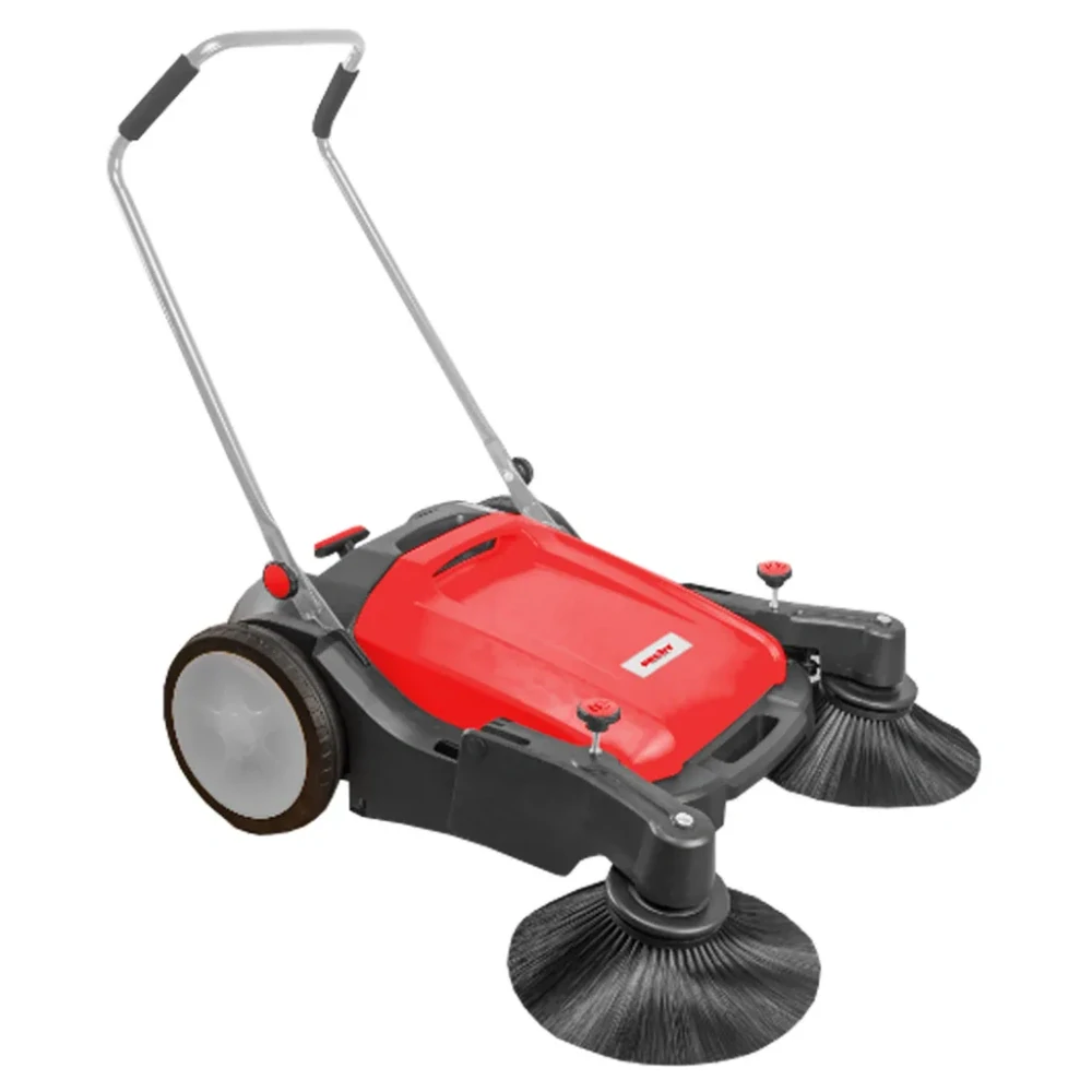 Stroj je plně manuální, bez motoru či elektrického pohonu – pohybem vpřed se kartáče automaticky roztáčí pomocí převodového mechanismu. Nastavitelný tlak předních kartáčů a nastavitelná výška zadního válcového kartáče umožňují přizpůsobit výkon aktuálním podmínkám a typu povrchu. Ergonomická nastavitelná rukojeť zajišťuje pohodlnou práci i při delším používání.