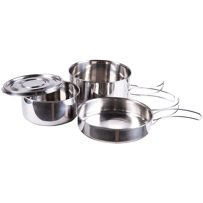 Kempinkové nádobí a jídelní sady. Skládá se ze dvou hrnců, pánve a pokličky, která slouží jako talíř.