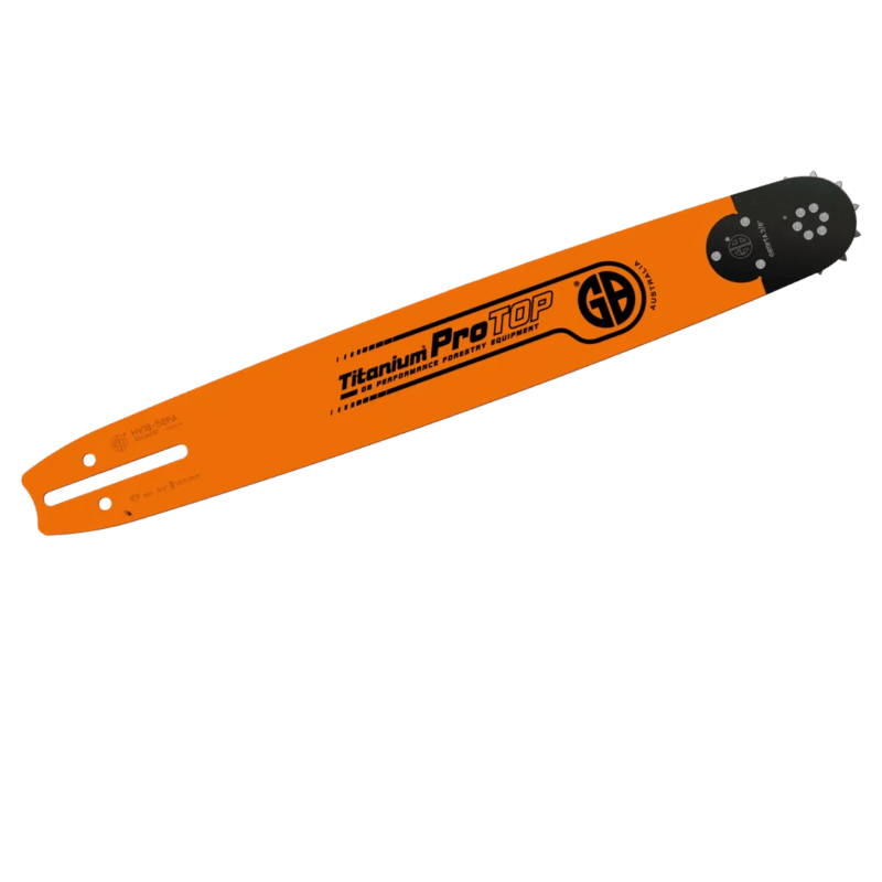 Prémiová profesionální vodicí lišta GB® Titanium Pro Top je navržena tak, aby výkonem překonala všechny ostatní produkty na trhu. Díky plnostěnné konstrukci z titanové legované oceli, vyměnitelné špičce a extrémně odolným vodicím hranám je ideální volbou pro náročné profesionální použití v lesnictví.
