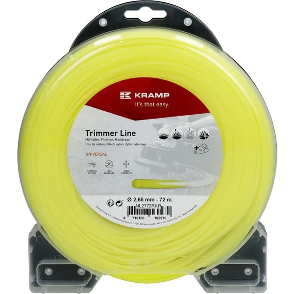 Standardní typ žací struny pro sekání nízké i vysoké trávy, typ nylonové lanko kruhové, průměr 2,65 mm, délka 72 m.